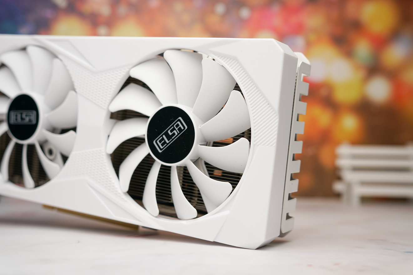 在显卡的外观设计上,艾尔莎RTX3060幻雷者12G使用的是双风扇散热的方案,配色为时下非常流行的白色,装机的时候可以很好地组建全白配置。在长度和厚度方面,该卡是230mm的长度,厚度是标准的双槽设计,市面上主流的机箱基本都可以轻松装进。