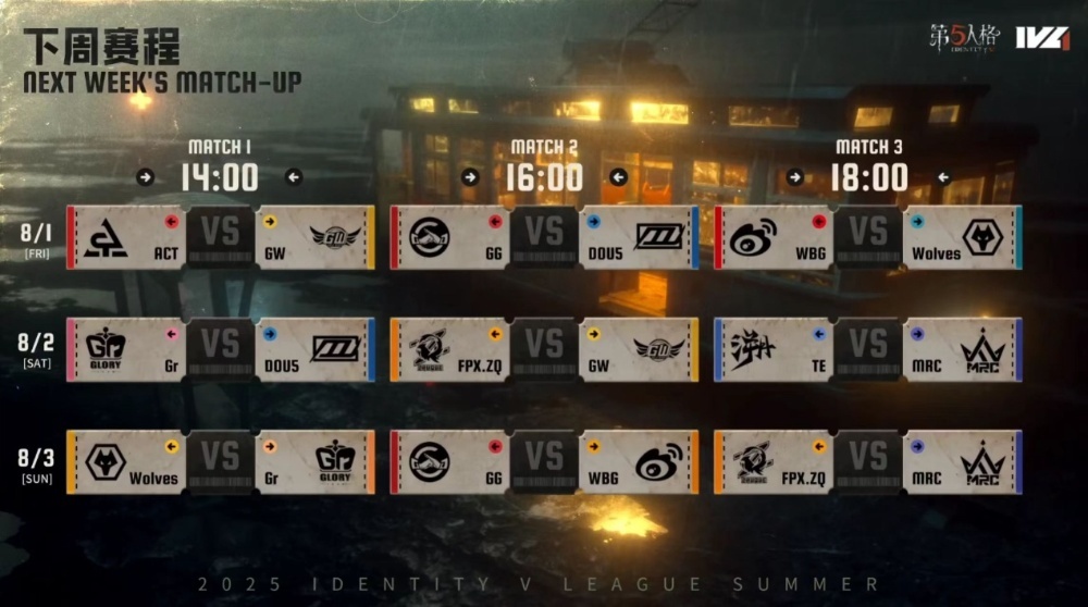 本周DOU5战队的再次连胜,TE战队求生者精彩运营拉扯四跑破轮,以及WBG_N1e拿出冷门角色“噩梦”四抓Gr战队完成翻盘,成都Wolves战队求生者多次四跑都说明了IVL联赛无弱旅。Gr战队虽比赛失利但仍凭借前期的积分优势稳居榜一,而成都Wolves战队紧随其后,成都Wolves战队的求生者状态越来越好,在本周完成两次四跑为队伍创造了巨大优势,展现了强势求生者队伍的个人能力和团队配合。目前排名中游的队伍积分紧咬,季后赛席位的归属仍有变数,后续的竞争也势必会更为精彩。