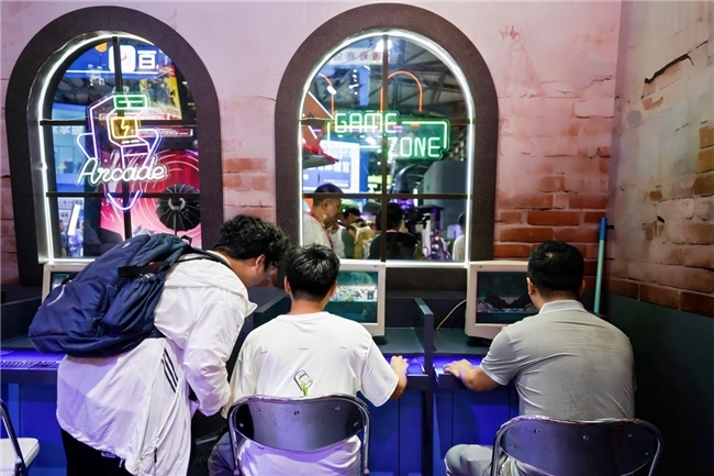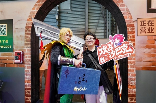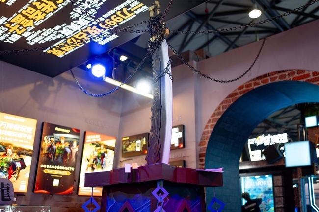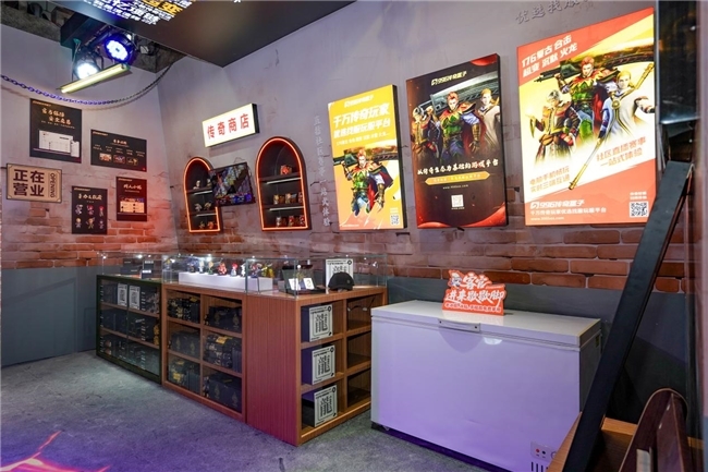 996传奇盒子展区堪称本届ChinaJoy的“情怀担当”,不仅外部复刻还原了传奇游戏中经典的沙城城堡,内部还打造了巨型传奇屠龙刀、03年传奇网吧、传奇商店等区域。木质桌椅、红砖墙面、老式电脑等元素,精准还原了二十年前网吧的经典场景,让不少老玩家一踏入展区便倍感亲切。那些年家用电脑尚不普及,无数玩家正是在这样的环境中,与兄弟一同攻沙、彻夜鏖战,展区里刻意做旧的墙壁、复古海报,仿佛将时光拉回那个热血沸腾的年代。