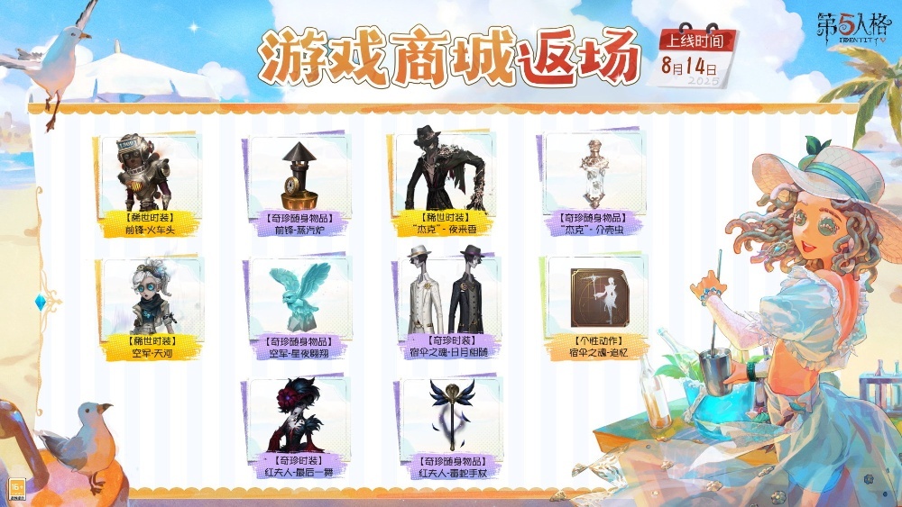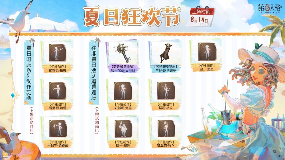 欢声笑语,热浪派对!网易首款1V4非对称竞技手游《第五人格》夏日狂欢节将于8月14日正式开启,即刻登录游戏,参与活动赢取头像,还有多重好礼隆重登场,属于夏天的热烈还在持续!
