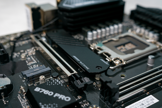 在硬盘的扩展部分,艾尔莎BOWMID B760 PRO D4提供了两个PCIe 4.0 x4的M.2接口,其中第一个M.2口是自带马甲的设计,它可以支持2280的长度,玩家们可以节省另购散热片的成本。如果是2242或者2260长度的规格,我们也可以单独购买延长支架进行安装。