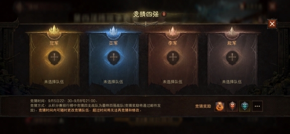 9月5日晚的积分赛结束后,本届赛事的64强战队名单将最终确定,届时竞猜活动也会同步开启。冒险者可在9月8日晚21:00前,前往活动界面,选择你心目中的4强战队。