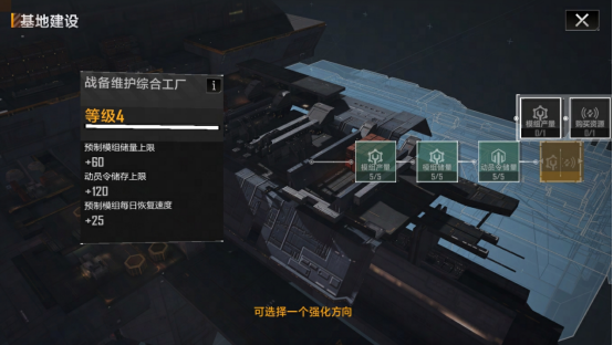 同时,新版的设施强化项中还引入了一种全新的“2选1”强化项,开拓者只能从2种设施强化效果中选择1种生效。开拓者可以根据自身的实际情况,灵活选择最适合自己的强化项,真正实现了基地的个性化经营。