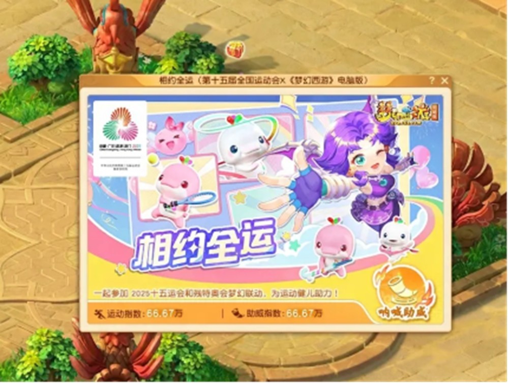在具体合作内容方面,十五运会吉祥物“喜洋洋”与“乐融融”将正式入驻《梦幻西游》电脑版的游戏世界。这两个以中华白海豚为原型设计的吉祥物,既承载着粤港澳三地携手办赛的象征意义,也将在《梦幻西游》中化身为限定祥瑞和活动NPC,引导玩家参与“活力全运”等系列主题活动。玩家通过完成任务,不仅能获得游戏内奖励,还能积累全服“运动指数”,以数字化方式为现实中的运动员助威,实现虚拟与现实的趣味互动。玩家达成指定任务目标,还能免费领取一只喜洋洋或乐融融祥瑞,将全运会的温暖陪伴与运动激情留存在虚拟世界中。