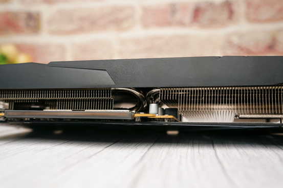 从显卡的侧面可以看到,艾尔莎BOMID RTX5060Ti幻雷者8GD7的散热器带有5根镀镍的热管还有密集的散热鳍片,它可以有效地传导GPU的热量,散热能力足够优秀。与此同时,该卡还拥有5+2相的核心供电以及8层的PCB,用料扎实可靠。
