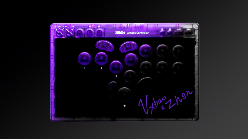 八位堂天刃星街机控制器紫透双签版由职业电竞选手村肉和小宝联袂打造,带有代言人签名。紫色是村肉和小宝的专属幸运色,让紫色加持,将赛场幸运传递给每一位热爱格斗游戏的玩家。这也正是八位堂天刃星街机控制器紫透双签版的命名原因,八位堂希望为玩家提供独一无二的收藏价值与竞技信仰加持。