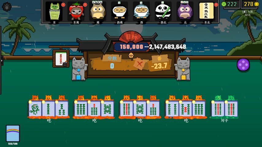 完成一轮游戏后,基本就算入门了;接下来迎接玩家的是更多特色牌组,在不同的牌组中有不同的效果,构筑思路完全不同,简直就像一款全新的游戏。当然游戏中还有麻将中必不可少的“点炮”要素,若打出本局的“炮牌”那么目标分数会有一定的增加,所以一定要更加谨慎。