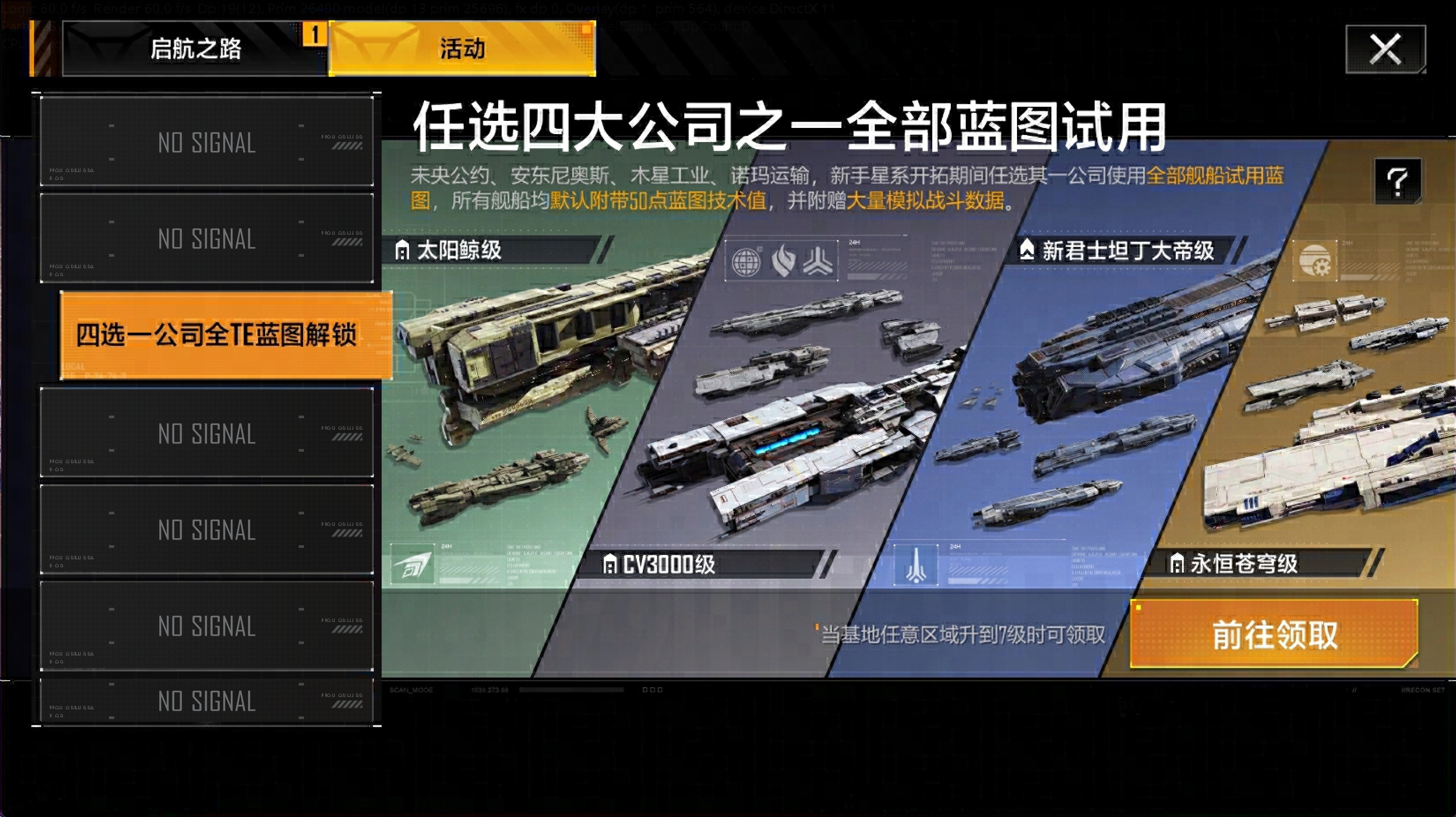 当基地扩建等级达到7级,即可解锁重磅福利:可在未央公约、安东尼奥斯、木星工业、诺玛运输这四大公司中,任选其一获得该公司旗下的全部蓝图试用权(包括子型号)。