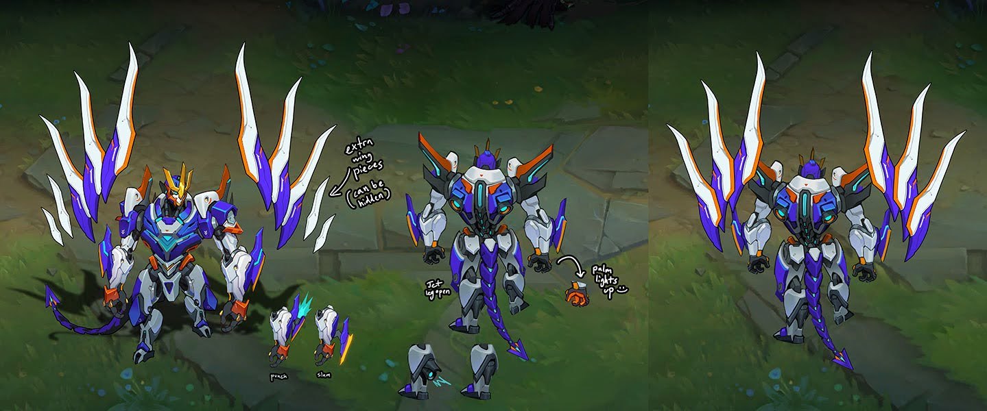 ○ 从26.02版本开始,贝蕾亚和莎弥拉将获得战斗学院皮肤,加里奥和奥恩则将获得机甲漫画主题的皮肤。