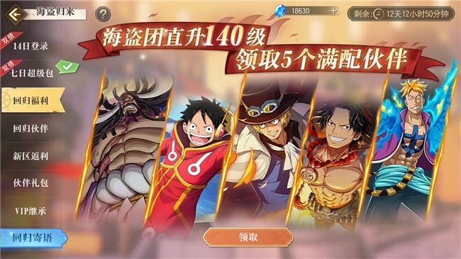 为迎接老玩家回归,本次周年庆推出极具诚意的“回归赠礼”机制。符合条件的老船长除了领取回归礼之外,还可享受海盗团等级直接提升至140级的福利,还可以免费获得三觉SSS角色,极大缩短了养成周期,让老船长能迅速重返巅峰战场!