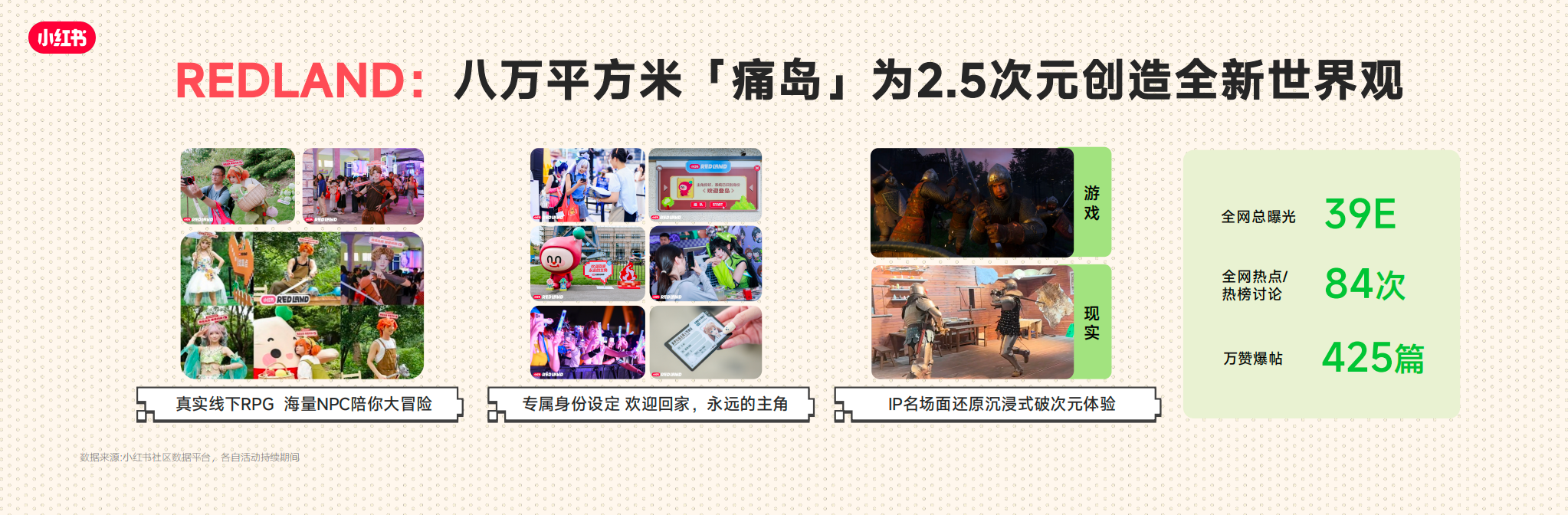 • 通过「游戏TA来访计划」、「REDLAND」等独家IP,我们让游戏角色与游戏社交的锚点成功从线上延伸至线下,破圈吸引2.5次元泛用户。