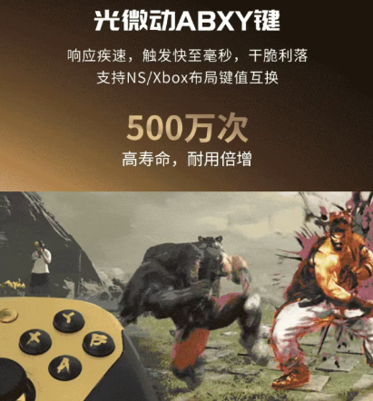 500 万次寿命的光微动ABXY键,响应疾速,触发干脆利落。