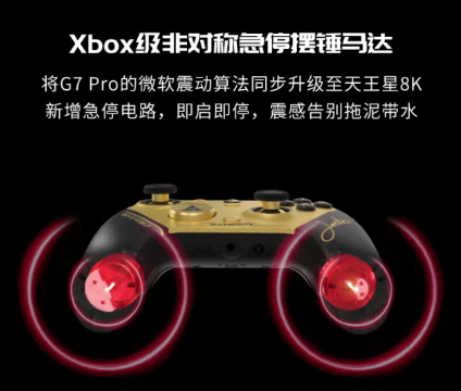 继承G7 Pro的微软震动算法的Xbox级非对称急停摆锤马达,新增急停电路,震感即启即停,沉浸感大幅增强。