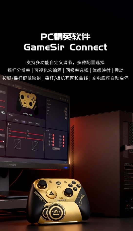 还可通过PC精英软件“GameSir Connect”,进行多功能自定义调节,多种配置选择。