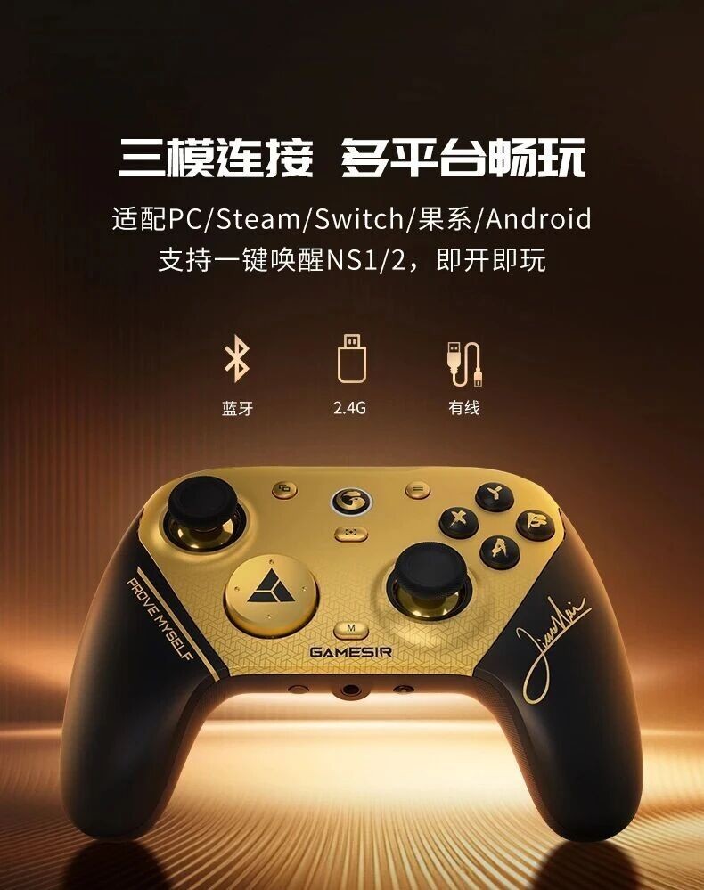 支持蓝牙、2.4G接收器、有线三模连接,广泛兼容PC/Steam/Switch/iOS/Android等多平台,并支持一键唤醒Switch 1/2,即拿即玩。