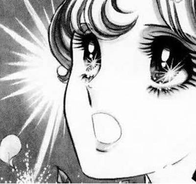 ▼小时后大家一定学过怎样画少女漫画的眼睛,通常就是一定要留光点在里面,像是这样...