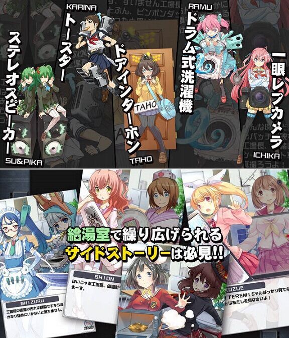 日本 Aniplex Mobile 旗下直属子公司「番町制造所」,预计在今年春季于iOS、Android平台上推出最新手机游戏《家电少女》。这款游戏将把家中常见的洗衣机、烤面包机等家电用品拟人化成各具特色的美少女角色,并采用时下最为流行的转珠玩法作为战斗系统。