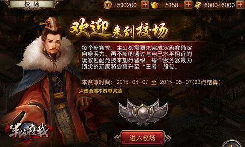 《军师救我》新版中除了擂台外,全新增加PVP排位赛模式“校场”。校场采用英雄联盟等一系列MOBA游戏中的排位赛机制。玩家可以先参加10场定级赛来决定自己的段位,之后通过匹配与自己实力接近的玩家进行排位赛,战胜对手就可以获得相应的积分并获得奖励。排位赛共分为铜,银,金,王者4个段位。当玩家的积分到一定数量时,就可以晋级为下一个段位。剑指最强王者,舍我其谁!