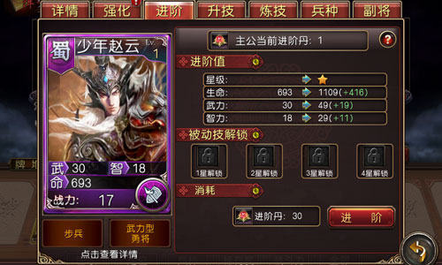 《军师救我》新增进阶道具——培养丹。新版中,武将进阶不再消耗军魂而是使用培养丹进行进阶。而每次升阶都会提升都会提升一定的消费数量。培养丹,培养最强武将!
