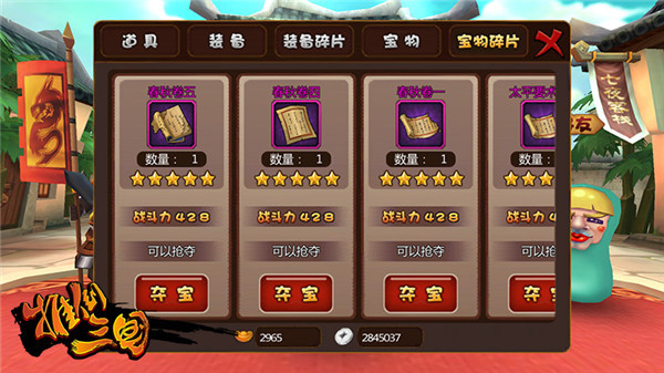 在“全民夺宝”里,一切你能想到的、你所需要的,都有可能出现,至于能不能在全服竞争中抢到,就要看你的运气与魄力了。俗话说得好,运气也是一种实力嘛,祝愿每位主公都能抓住机遇、见证奇迹,《推倒三国》新版本等着你!