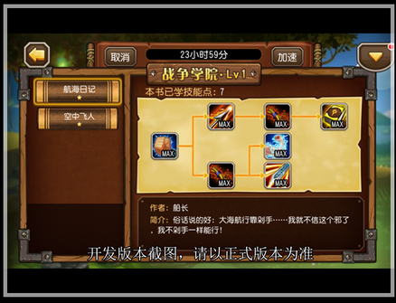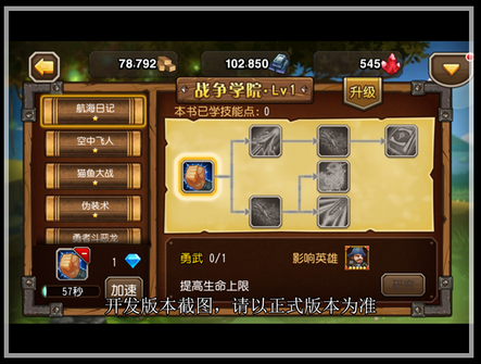 每套魔法书中会涉及几个英雄,通过花费一定的资源和时间进行技能研究就可以让这些英雄的属性得到加强。