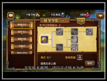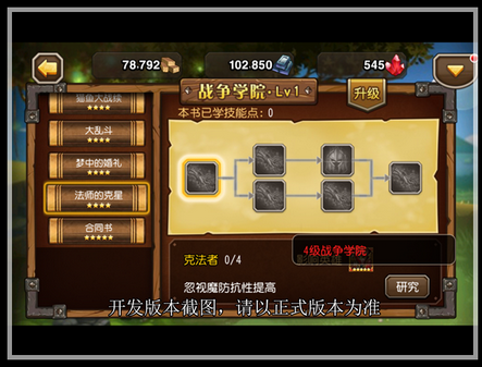 学院里有很多不同种类的魔法书,每套魔法书会涉及到几个英雄,研究技能可以增强这些英雄的属性。