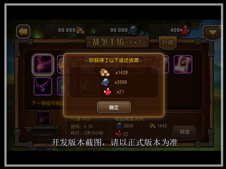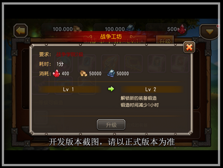 当战争学院达到新的等级后,队长大大们需要花费一定的时间和材料,将战争工坊提升至新等级。