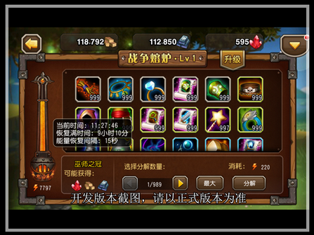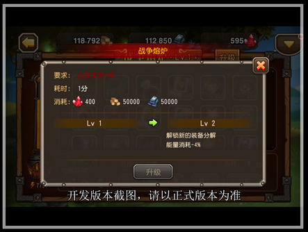 跟战争工坊一样,战争熔炉也需要达到一定要求,并消耗一定的资源和时间,才能解锁下一等级,开启新的可分解装备,分解时所消耗的能量更少~