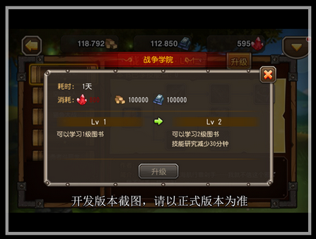 学院升级需要消耗一定材料和时间,下一级魔法书所涉及到的英雄和所获的能力都更加诱人,而研究所花费的时间也会减少~