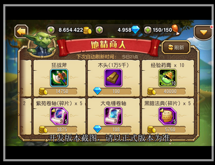 左侧便是所获得的魔法书,魔法书需要不同种类的魔法书碎片进行合成,这些碎片可以在指定的精英关卡里获得,也能在商店里进行购买,或者在升级战队领地中的建筑,完成要求的任务中获得。