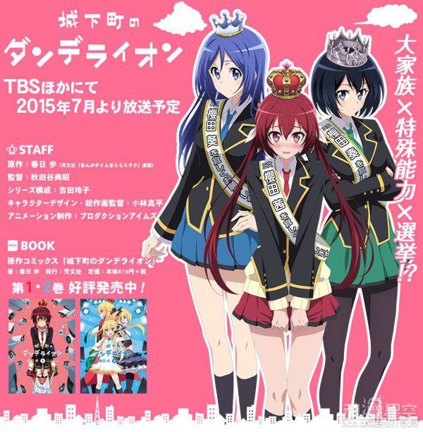 确定将于7月开始播出的动画《城下町的蒲公英》在近日公开了动画的杂志人设图,将要播出的电视台等信息也已经曝光。此次《Manga Time KIRARA Miracle!》的封面便是本作品的两大女主角茜和奏的形象,总的来说画风跟原作变化并不是十分明显。另外,官方也确定届时将有TBS、CBC、SUNTV、BS-TBS等电视台播出这部作品。