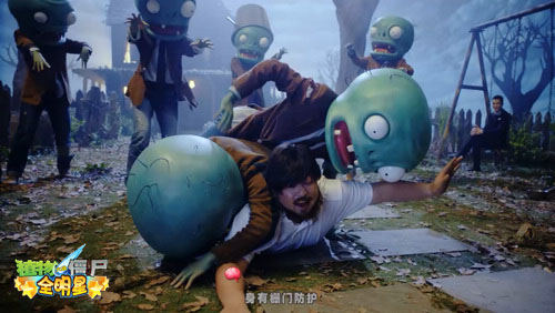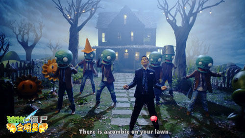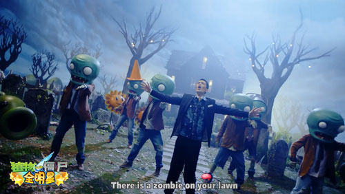 虽然整部MV都处在灯光昏暗的环境中,可是有搞怪的大叔疯狂戴夫出现,僵尸也似乎不再那么可怕。嘻哈邋遢的装扮,伴随着节奏明快的音乐,头顶铁锅赶路,时而给向日葵浇水,时而亲吻土豆,看来他真的是植物花园的忠实守护者!不料被雨神僵尸发现,遭到群尸围攻,最后在餐桌上才侥幸从雨神僵尸萧敬腾的刀叉下逃生!