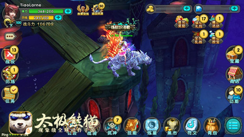 在新版本中《太极熊猫》又加入了坐骑养成系统,三种炫酷坐骑玩家可以随意挑选。在王座之巅和世界BOSS的争夺战中,玩家马上就可以体验到全新的骑乘作战啦!勇士们在挑战公会争霸世界BOSS时可以获得【圣魔之血】,凭借【圣魔之血】即可在商店中兑换相应的坐骑,坐骑可以为主人带来强大的属性加成,火麒麟对应高输出,冰霜犀牛侧重防御,而闪电虎则是敏捷输出并重,三者各有千秋。玩家通过骑乘坐骑还可以获得3个强大技能,免疫破防,在团战之中陷阵杀敌再也不是梦啦。不仅如此,玩家还可以为坐骑打造专属装备,通过材料收集提升坐骑等级,如同武神一般的属性养成,坐骑外观还会随着等级的提升而改变,等级越高,坐骑效果越是酷炫。
