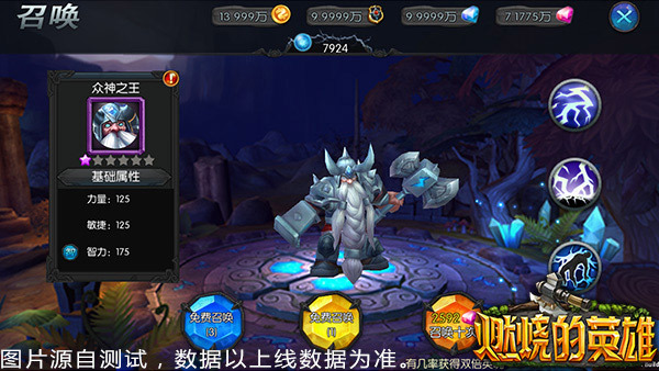 本次测试最先修改的,就是抽卡界面,将之前的扁平化的抽卡界面调整为英雄3D形象为主题的抽卡环境!更为直观展示英雄、技能、属性等等。