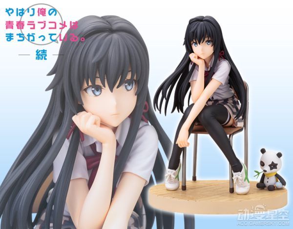 “雪之下雪乃”手办端坐在椅子上,故作思考状,显得十分的可爱。有她最喜欢的迪士尼吉祥物熊猫“潘先生”陪在左右。如果与之前发售的由比滨结衣搭配的话,一静一动,相得益彰。