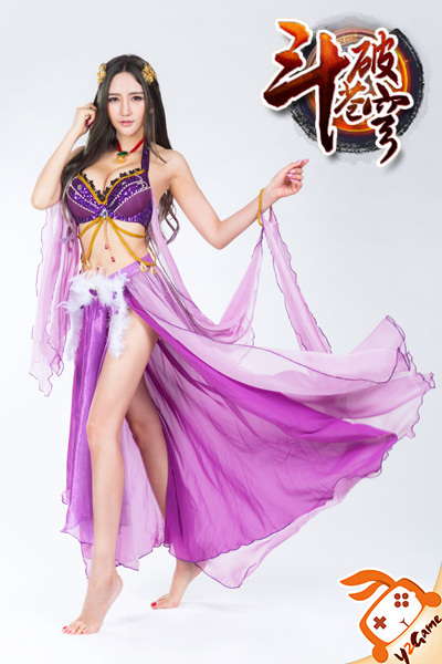 《斗破苍穹》手游中的美杜莎形象以紫色服装为主,服装性感不失华丽,金色的饰品凸显出女王的高贵身份。王明明很好的掌握了人物角色的性格,加之自己与生俱来的御姐气质,与原画中的形象做到了天人合一的效果。据说,王明明在拍摄现场还多次有过俯身的动作,其F级的美胸呼之欲出,诱人的长腿撩动着现场每个人的心弦,不论男女。