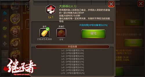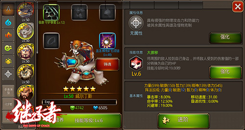 威尔丁斯,初始力量30、敏捷5、智力6、精神6、体力25,攻击150,血量1025,防御60,从属性上看,即使没有什么撑血装备也和脆皮搭不上边。而且他的技能也是很不错的:“大挪移”可将周围的敌人拉到自己身边,并将敌人受到的伤害值得一部分转换为自己的HP。从技能上看,显著的提高了己方的生存能力,让其他队友能够安心而充分的发挥自己的作用。通过技能升级可以增加吸收HP的百分比,让肉盾效果发挥的更加淋漓尽致,你就会体会到这头熊的可怕。