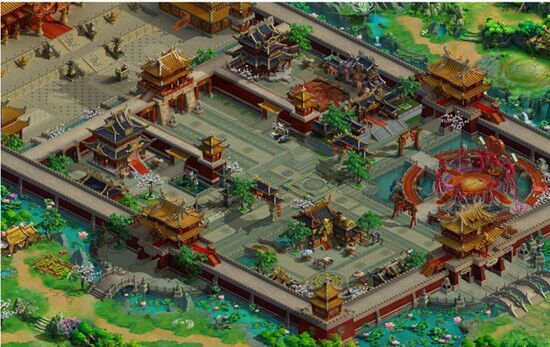 这是一座热闹的城池,无论是以中轴线为基础修建的三座城门,还是按照天干地支排列的古朴商业建筑,都足以看出美术组的良苦用心。五点钟方向伫立的桃色结婚圣地,那金黄压红的喜字及其夺人眼球。可以预测,在不久的将来,游戏中的一段段佳话将会从此处传遍大街小巷,在每一位玩家心中留下刻骨铭心的回忆。