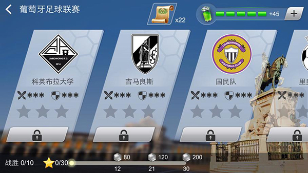 生涯赛所有的对手是各个联赛球队,从中超开始,然后是韩国K联赛、日本联赛、葡超、荷甲、法甲、意甲、德甲、西甲,最后是英超,一共10个大联赛,140多个1球队。首次通关每个球队都能获得大量的球队经验。通关之后还可以继续挑战,一定要把每一个球队打到三星(净胜球3个或者3个以上),每个球队第一次三星通关会给20多个宝石,如果整个联赛都三星通关了,还会一次性给几百宝石,这些宝石加到一起,也是非常可观的数量了,能够抽好多次超级球探了。不管是通关某个球队,还是想要打三星,都有一个技巧:生涯赛的球队是不会换战术的,所以一旦在比赛中确定了对方的战术,就可以在球队管理里面修改到完全克制对方战术然后再去挑战,这样获胜会更容易一些。