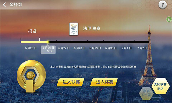 大师联赛这个是仿真欧洲联赛杯赛赛制的,先是进行各国家的相应联赛,每个联赛有固定的名额,晋级联盟杯和冠军杯的名额,晋级的球队进入杯赛继续比赛,而被淘汰的球队可以参加下一轮大师联赛(比赛节奏将会进行调整,每天只会进行2~3场比赛,整个比赛周期将拉长为22天一届)。