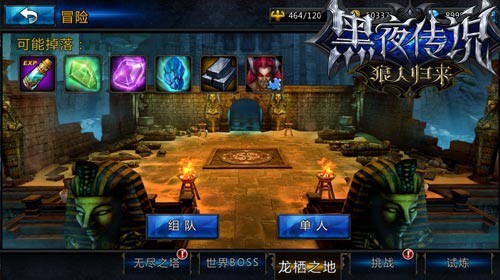新的冒险玩法,在这里,掉落大量超值高级物品,如:经验药、能量石、幻化石、死亡预言碎片、六级陨铁、佣兵碎片!有四种难度,分别对应不同等级和掉落,可单人可组队攻打,可调整奖励倍数。