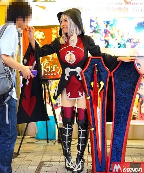 TV动画《Chaos Dragon 红龙战役》娄震华的coser于9月5日开展了活动。活动情报:『以“黑夜的暗杀者”驰名的娄震华,与魔剑・七杀天凌殿下一起空降突袭秋叶原!』日本一家网站(Seaside Tears 2)发表感想:“暴露的胸口处非常的性感啊...”