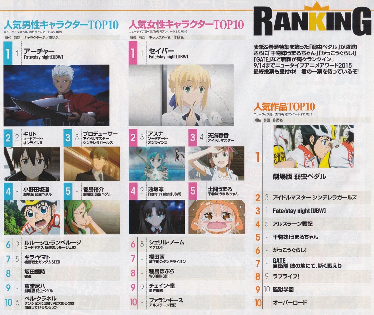 【《Newtype》人气作品排行榜】