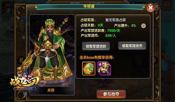 每一个重要的要塞据点,都由专门武将BOSS守护,想要轻易攻克实属不易。可是,这里诱惑岂容忽视,纵观三国历史,历来要塞都是各国争相攻取的重要计划。而在《战龙之刃》中,击败镇守BOSS,拿下据点,又何尝不是军团的选择呢?我们不防来看下,占领据点后的军团奖励吧,这里大量产出军团活跃和军团币,占领军团的每个成员均可领取。其次,击杀镇守BOSS后,会有几率获得神秘淬炼石和镇守武将魂石,受益的可是整个军团呀!