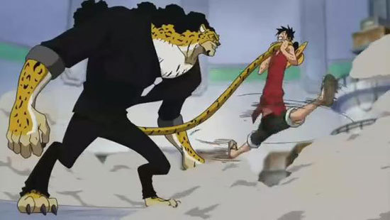 草帽团遇到的第一个真正的强敌,在顶上帮路飞救艾斯,如果没有看过前面你也很难想象路飞两次差点死在其手里,谁还记得那时坑爹的水路飞大战沙鳄鱼?