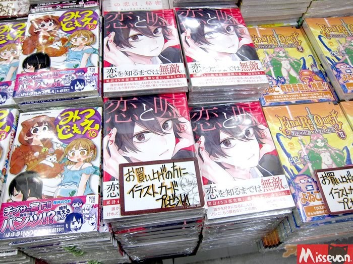 在漫画《恋爱禁止的世界》第3卷发售日当天的秋叶原,海报条幅上写着:“那份恋爱,是必要的吗?即使那份思念会让你身心焦灼、被人嘲笑、寂寞落泪、嫉妒发狂,即使如此还是想要喜欢一个人吗?如果你的回答是肯定的,那请读读这本漫画吧。”虎之穴秋叶原店A的POP:“是屈服于政府的淫威?还是奋起反击?厚労省(日本主管医疗,福利,保险和劳动等行政事务的中央行政机关)胆量非凡的座谈会。愈发残酷的第3卷!!”