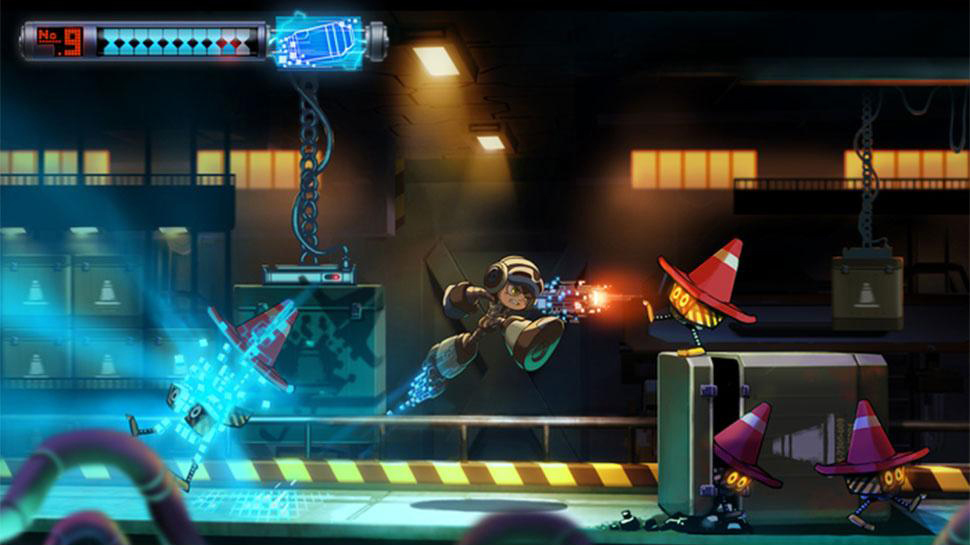 《无敌9号》沿用了《洛克人》系列经典的横版卷轴动作过关模式,游戏背景设定在一个机器人十分发达的未来世界。随着突如其来的黑客攻击,机器人们陷入暴走,玩家将操作战斗用机器人团队“Mighty Numbers”中排名第九的“Beck”,击败强力的Boss以及其他8位兄弟机器人,最终揭开事件黑幕。