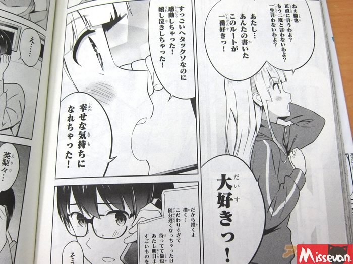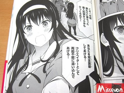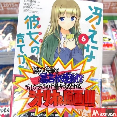 漫画《路人女主的养成方法》根据女主角的不同分为三个版本和三条线,分别是英梨梨线的《egoistic-lily》版本、诗羽线的《恋爱节拍器》版本以及本篇线版本。此次发售的本篇线版本的《路人女主的养成方法》第6卷收录了第27话至第32话。书中夹着的传单上写着:“霞之丘诗羽也好,冰堂美智留也罢,通通干掉!”虎之穴A的POP上写着:“诗羽前辈连出狂言!?尝试导演工作而制作的剧本&原画!”