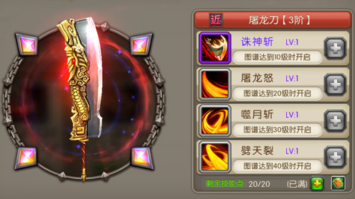 屠龙破千军、溅血染锋芒...屠龙刀素有《武器大师》“万金油”神兵之赞誉,不止因其良才美质设定而傲娇,与同系列“龙刀金剑”的命运羁绊,最终让自己立于不败之巅。屠龙刀作为神器图谱中极为少见的“四系”羁绊神兵,可激活“金石弥坚”(打造:九天玄铁)、“武林至尊”(上阵:与倚天剑)、“游龙绝杀”(上阵:与龙舌、龙鳞、七星龙渊、青龙偃月刀)、“风声鹤唳”(上阵:与龙鳞、孔雀翎、射雕神弓)高攻、高防、高耐力的极限战力。战斗中配合“诛神斩”无视防御的流血DOT伤害,几乎令对手在绝望中缴械投降,这才是屠龙刀威慑天下的霸道所在。