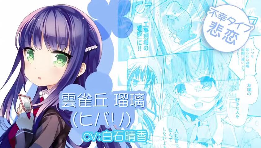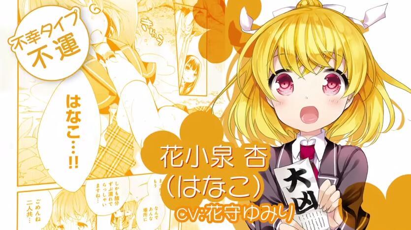 本次官方宣传PV采用了将动画人设和漫画剧情结合演绎的方法,在介绍五位主角的同时呈现出原作漫画的部分剧情,使没有接触过原作的观众也能或多或少了解人物的性格。在对每位人物进行特写时,官方还细心地标注了各自的“不幸”类型和简单的资料,观众们可以从PV中找出符合自己萌点的角色。